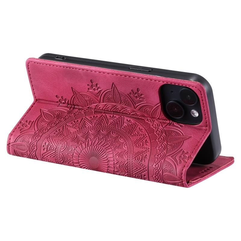 For iPhone 15 Plus Totem Embossed Magnetic Leather Phone Case(Red)