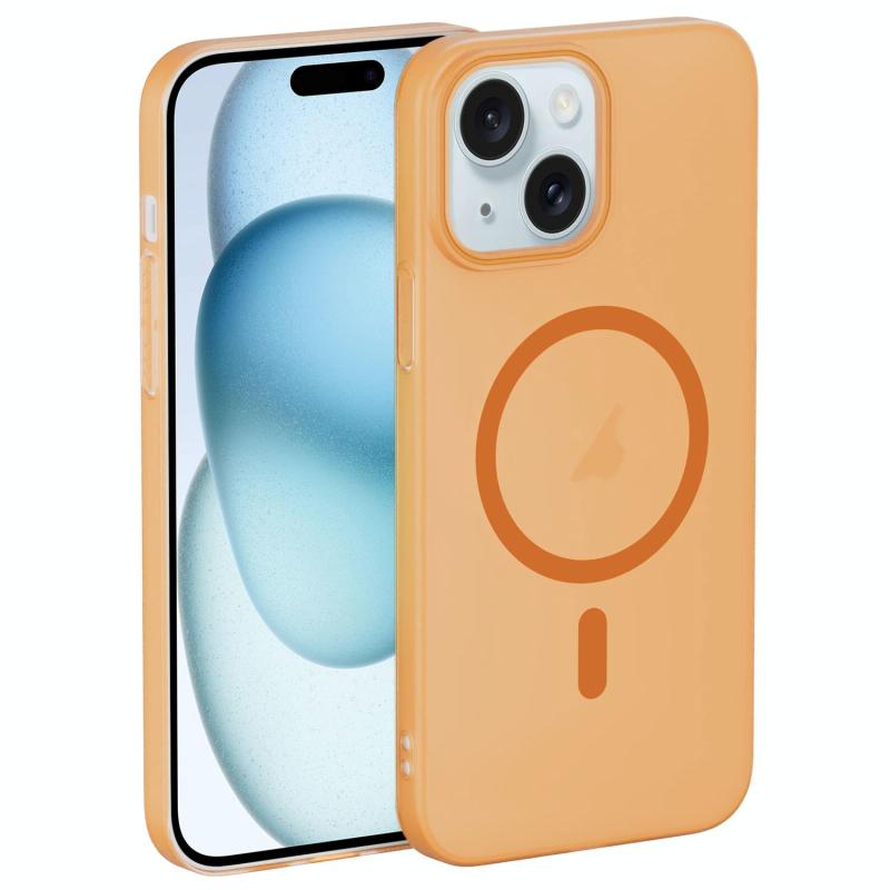 For iPhone 15 Plus Translucent Frosted Skin PC MagSafe Phone Case(Orange)