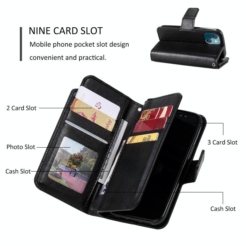 2. 9-card Wallet Function: 9 Card slots and 3 cash compartment to store your credit cards, cash, or small notes for daily needed.