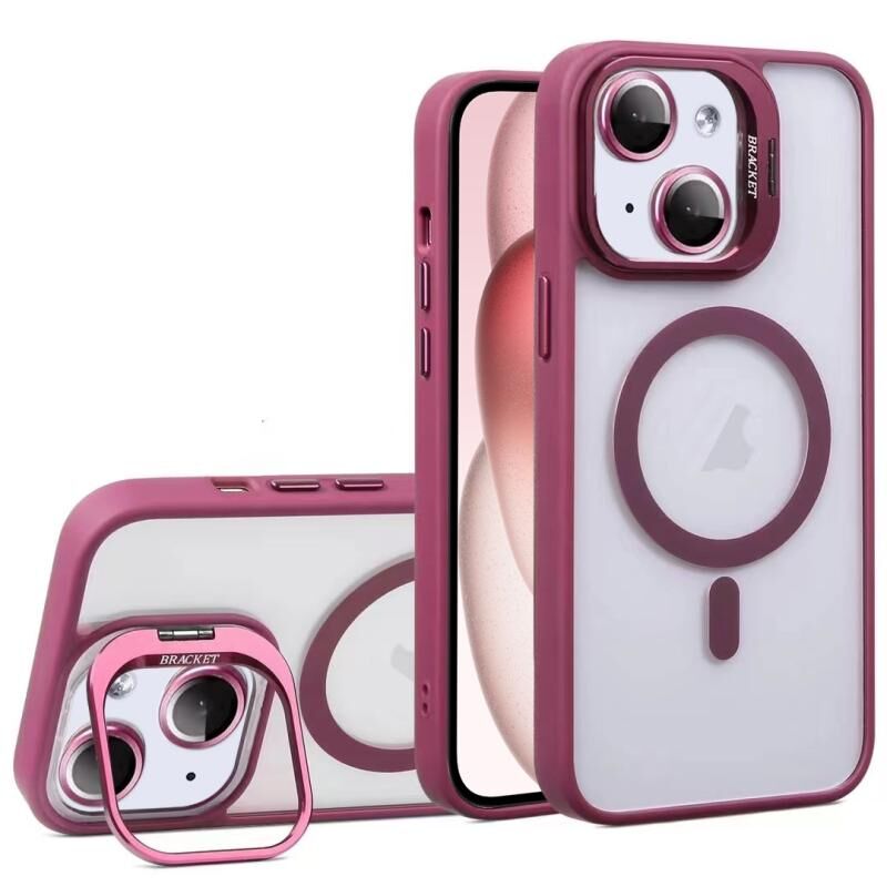 For iPhone 15 Plus U1 Invisible Lens Holder Acrylic + TPU MagSafe Magnetic Phone Case(Wine Red)