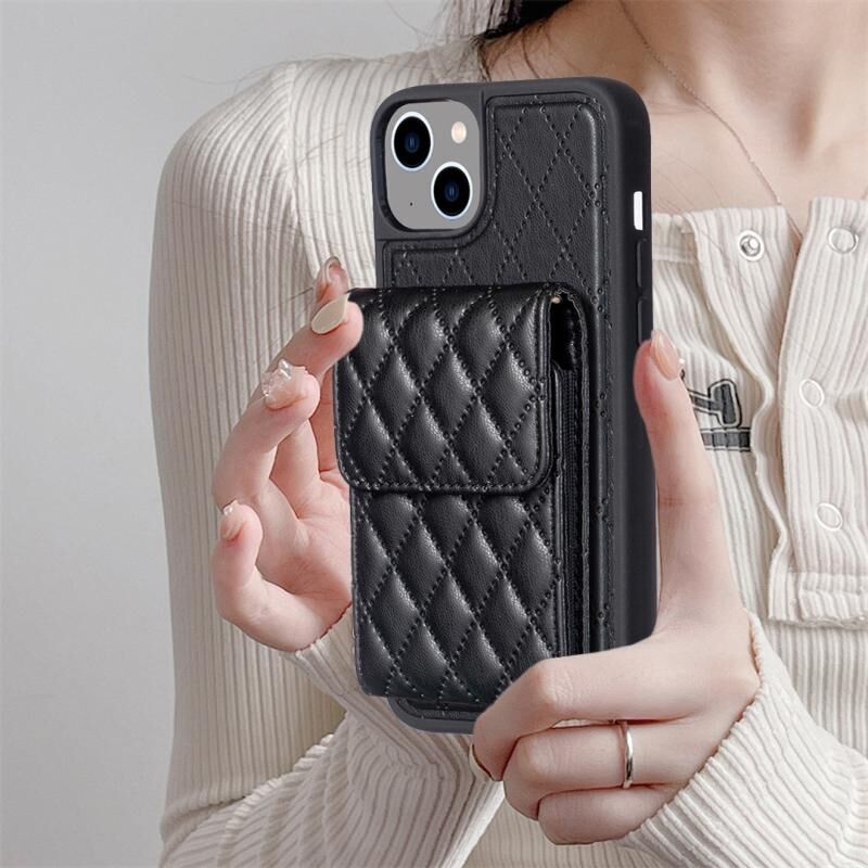 Θήκη τηλεφώνου κάθετης τσέπης για iPhone 15 Plus, δερμάτινη με ρομβικό σχέδιο (Μαύρο)