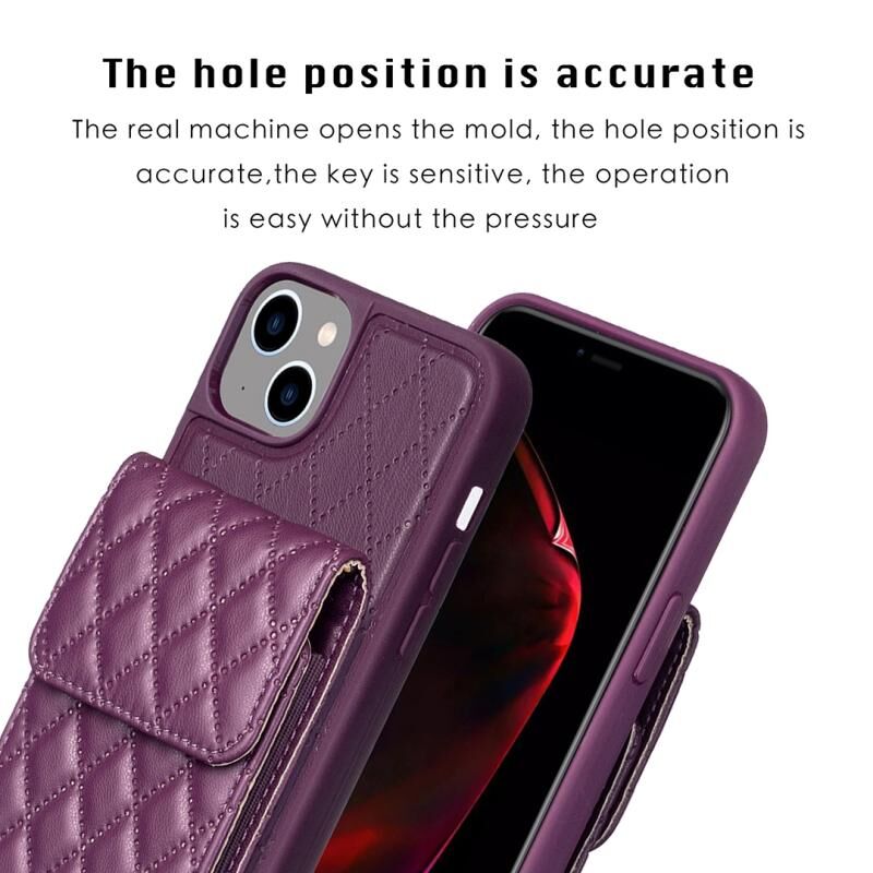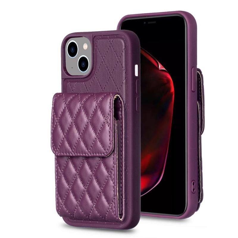 Θήκη τηλεφώνου κάθετης τσέπης για iPhone 15 Plus, δερμάτινη με ρομβικό σχέδιο (Σκούρο μωβ)