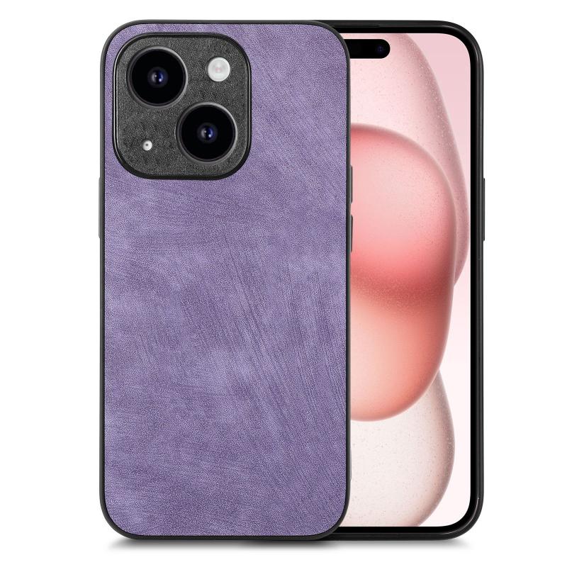 Θήκη κινητού τηλεφώνου για iPhone 15 Plus, με πίσω κάλυμμα από δέρμα vintage και πολυανθρακικό (PC) (Μαύρο)