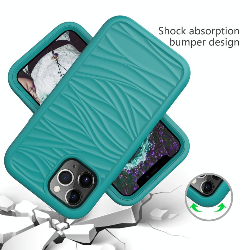 For iPhone 15 Plus Wave Pattern 3 in 1 Silicone + PC Phone Case(Dark Sea Green)