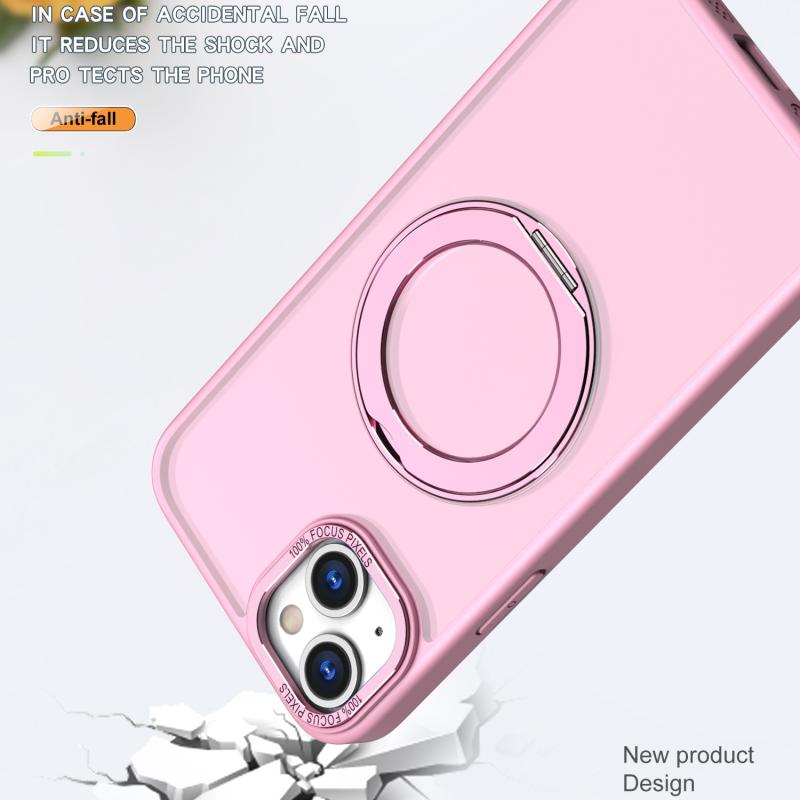 For iPhone 15 Plus Wing Series MagSafe Magnetic Ring Holder Phone Case(Pink)