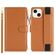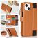 For iPhone 15 Plus Wristband Holder Zipper Purse RFID Leather Phone Case(Brown)