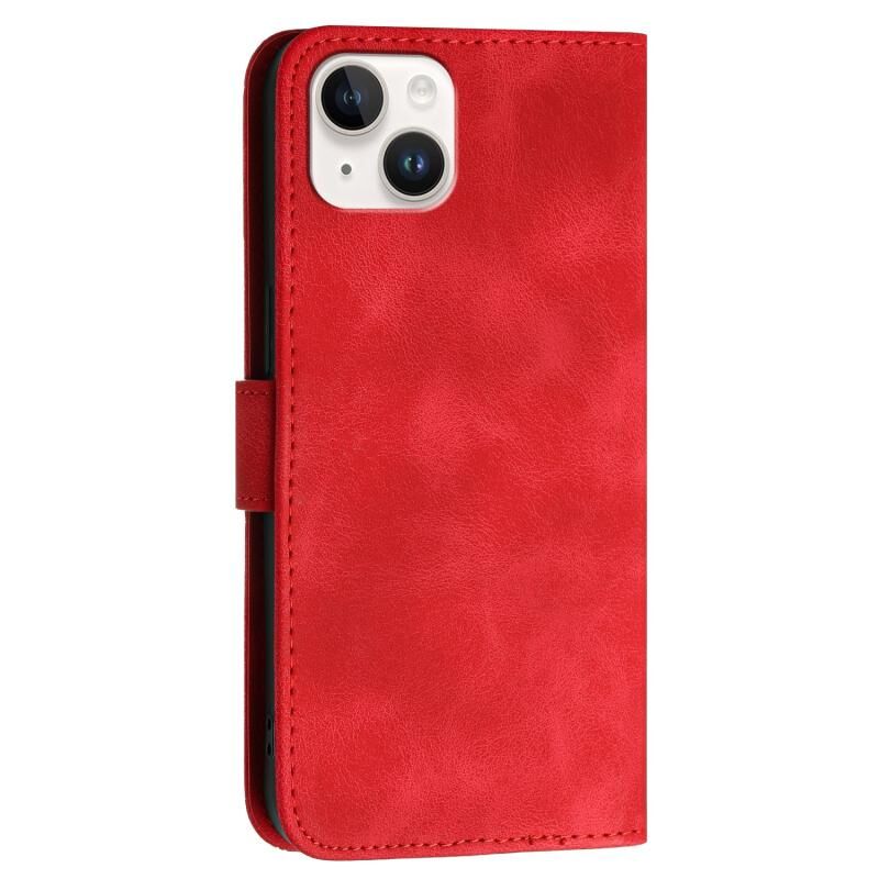 For iPhone 15 Plus YX0080 Grid Butterfly Embossed Pattern Flip Leather Phone Case with Lanyard(Red)