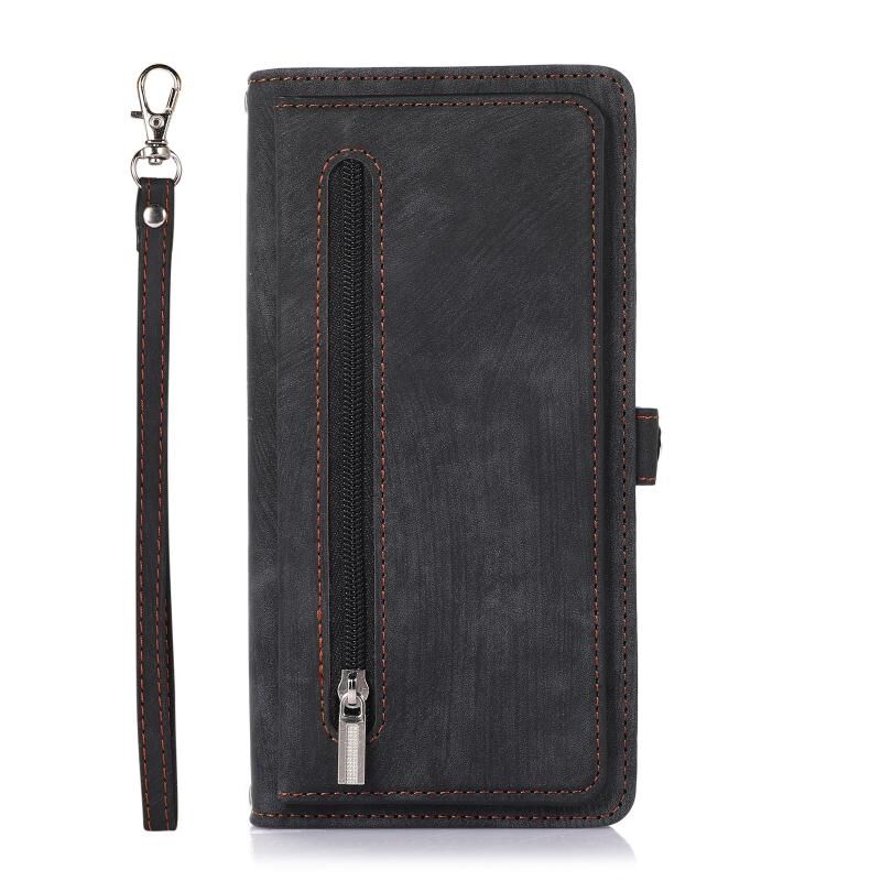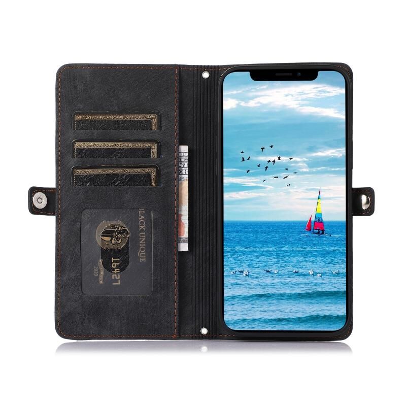 Θήκη τηλεφώνου από δέρμα με φερμουάρ, θήκη καρτών και πόρπη για iPhone 15 Plus (Μαύρο)