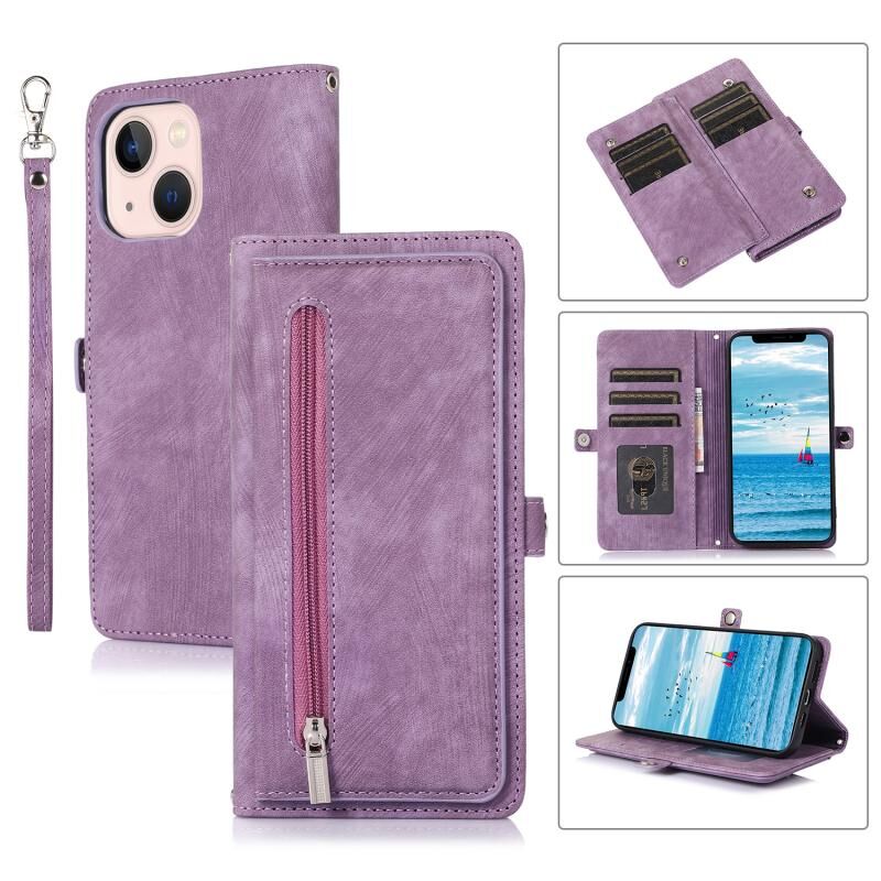 Θήκη τηλεφώνου από δέρμα με φερμουάρ, θήκη καρτών και πόρπη για iPhone 15 Plus (Μαύρο)