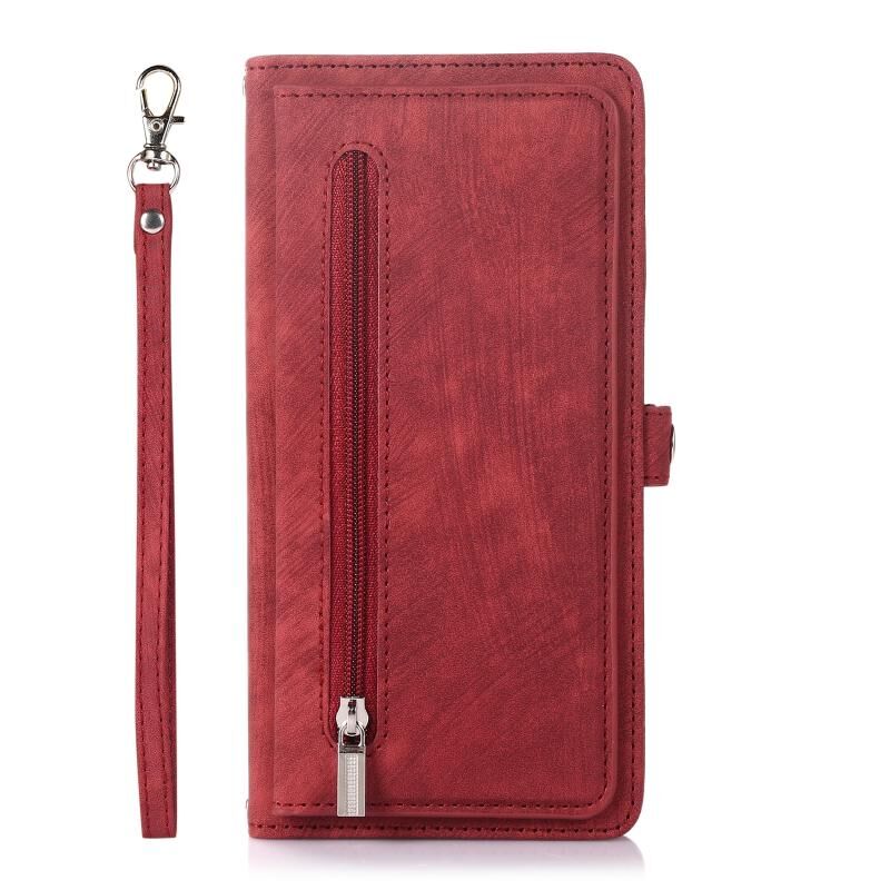 Θήκη τηλεφώνου από δέρμα με φερμουάρ, θήκη καρτών και πόρπη για iPhone 15 Plus (Μαύρο)