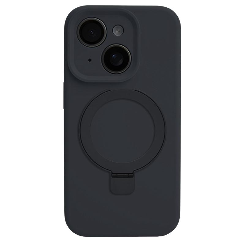 For iPhone 15 Precision Hole Liquid Silicone MagSafe Metal Ring Holder Phone Case(Midnight Blue)