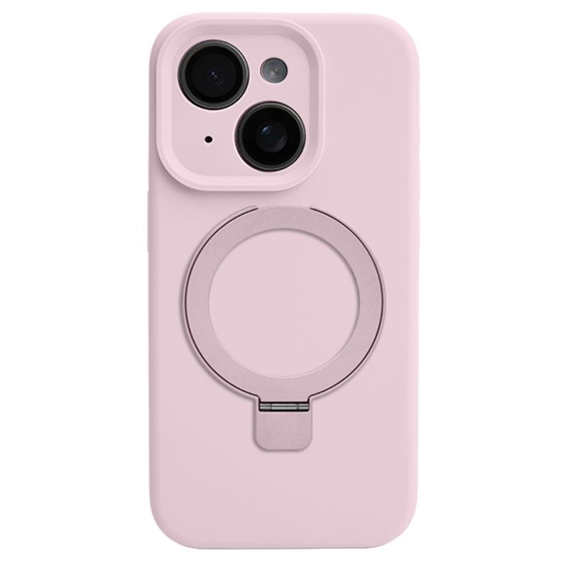 For iPhone 15 Precision Hole Liquid Silicone MagSafe Metal Ring Holder Phone Case(Pink)