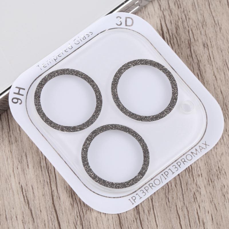 For iPhone 15 Pro / 15 Pro Max Glitter Ring Tempered Glass Camera Lens Film(Black)