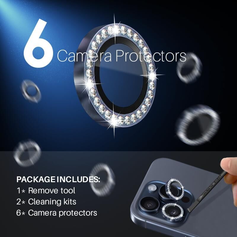 3.Ενσωματωμένα με κρύσταλλα για να δώσουν στον φακό της κάμερας του iPhone σας μια λαμπερή και εντυπωσιακή εμφάνιση, που λάμπει στον ήλιο, πολύ εντυπωσιακή και κολακευτική.