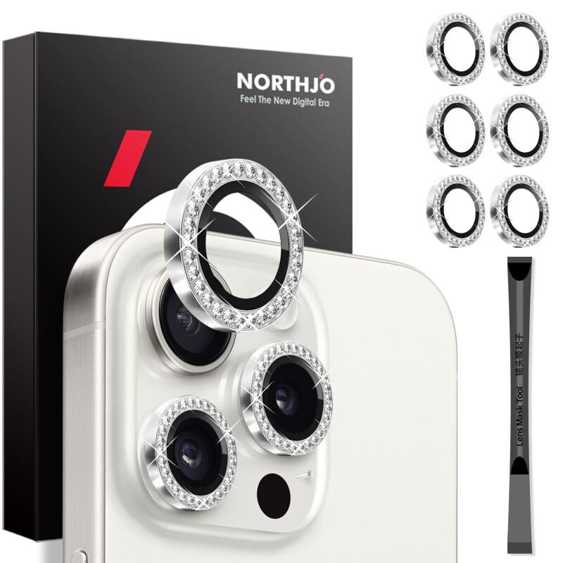 Για iPhone 15 Pro / 15 Pro Max NORTHJO 2 Σετ 6 Τεμαχίων Προστατευτικό Φακού Κάμερας Μεταλλικός Δακτύλιος Διαμαντιού (Ασημί) (NORTHJO)