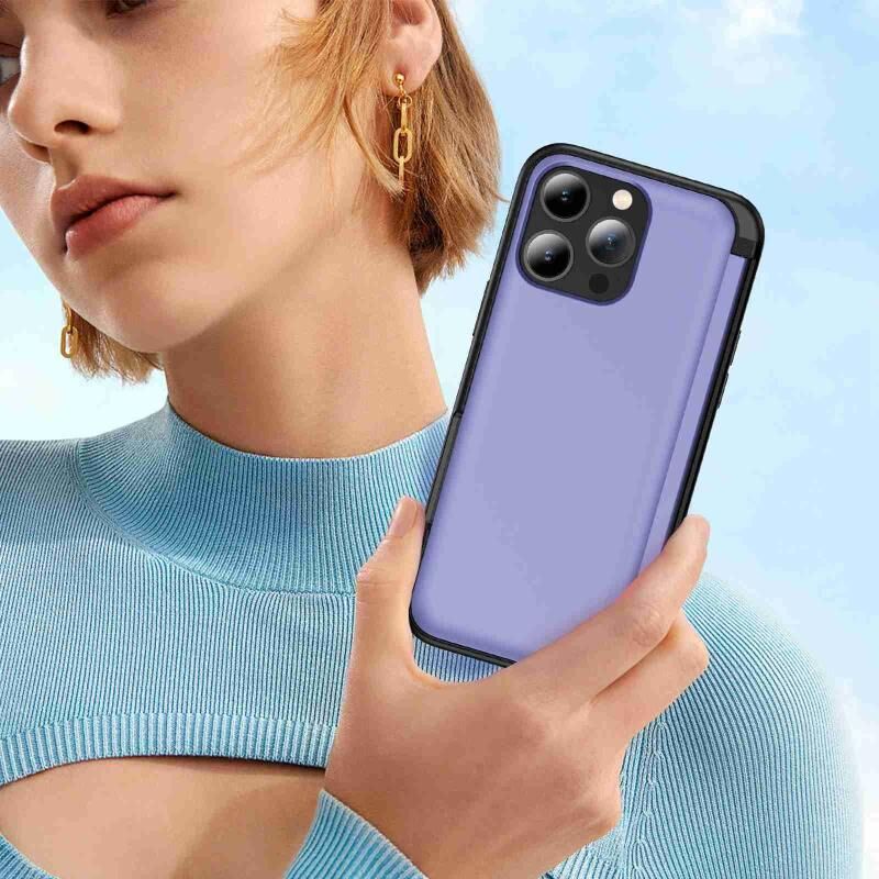 Για το iPhone 15 Pro 3 σε 1 Flip θήκη τηλέφωνο κάτοχος (ανοιχτό μωβ)