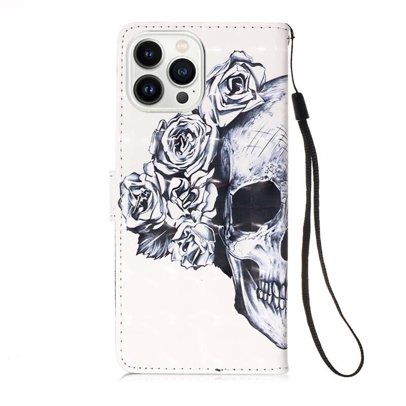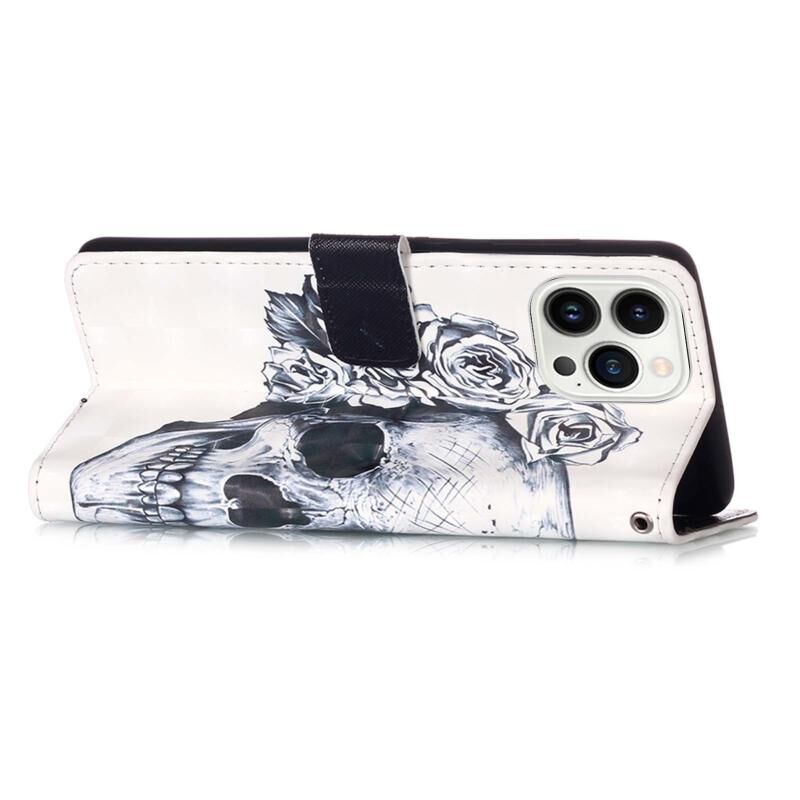 For iPhone 15 Pro 3D Painting Horizontal Flip Leather Phone Case(Skull)