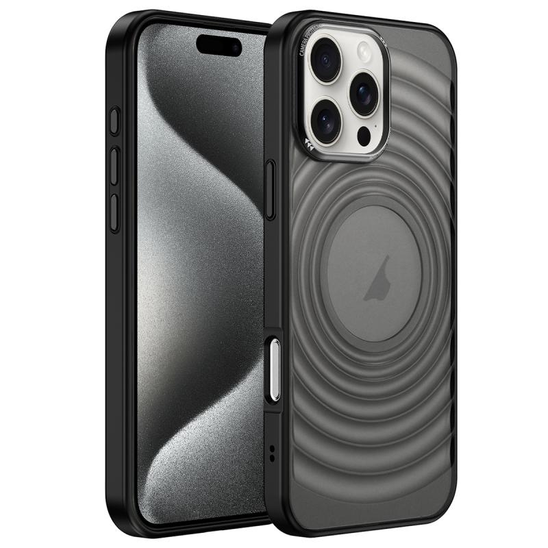 Θήκη τηλεφώνου για iPhone 15 Pro με υφή ακρυλικού δέρματος και κυματιστή επιφάνεια (Μαύρο)