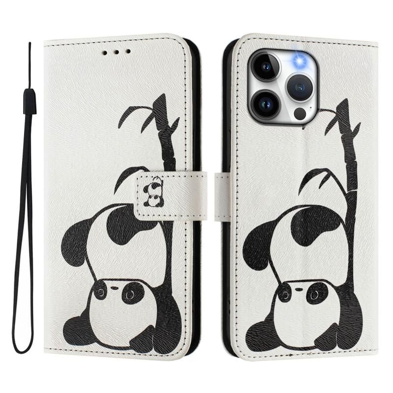 For iPhone 15 Pro Art Colored Drawing Pattern Leather Phone Case(Panda)