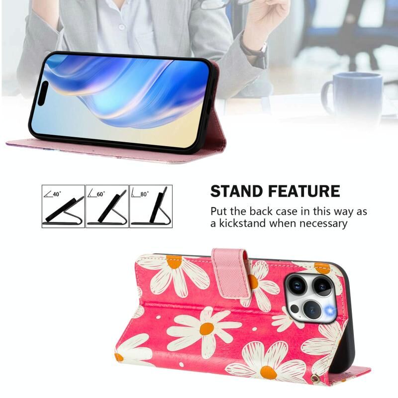 For iPhone 15 Pro Art Colored Drawing Pattern Leather Phone Case(Pink daisy)