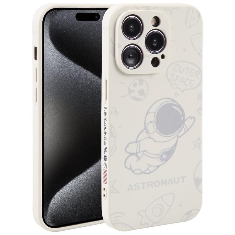 Θήκη τηλεφώνου για iPhone 15 Pro, σιλικόνης, με σχέδιο αστροναύτη και ευθείες άκρες (Αστροναύτης Άρη - Μαύρο)