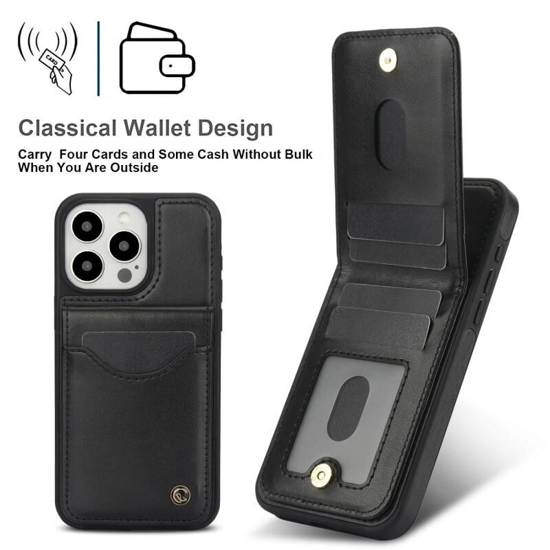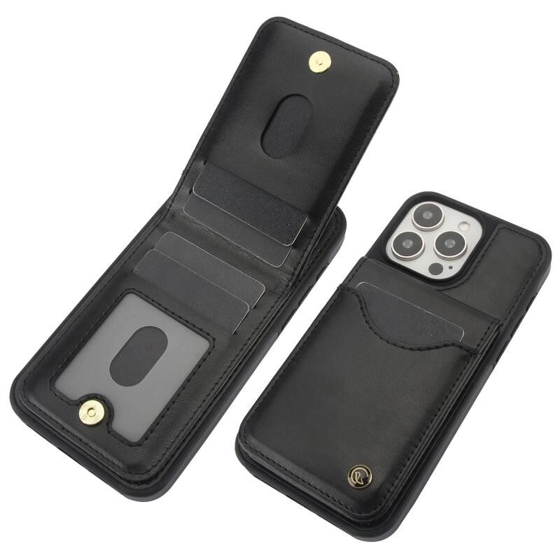 Θήκη τηλεφώνου από δέρμα με κάθετη αναδιπλούμενη θήκη καρτών για iPhone 15 Pro (Μαύρο) (Awquer)