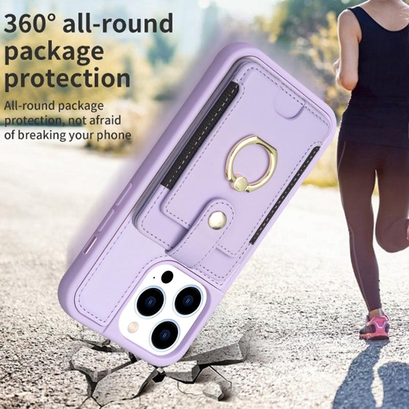 For iPhone 15 Pro BF27 Metal Ring Card Bag Holder Phone Case(Purple)
