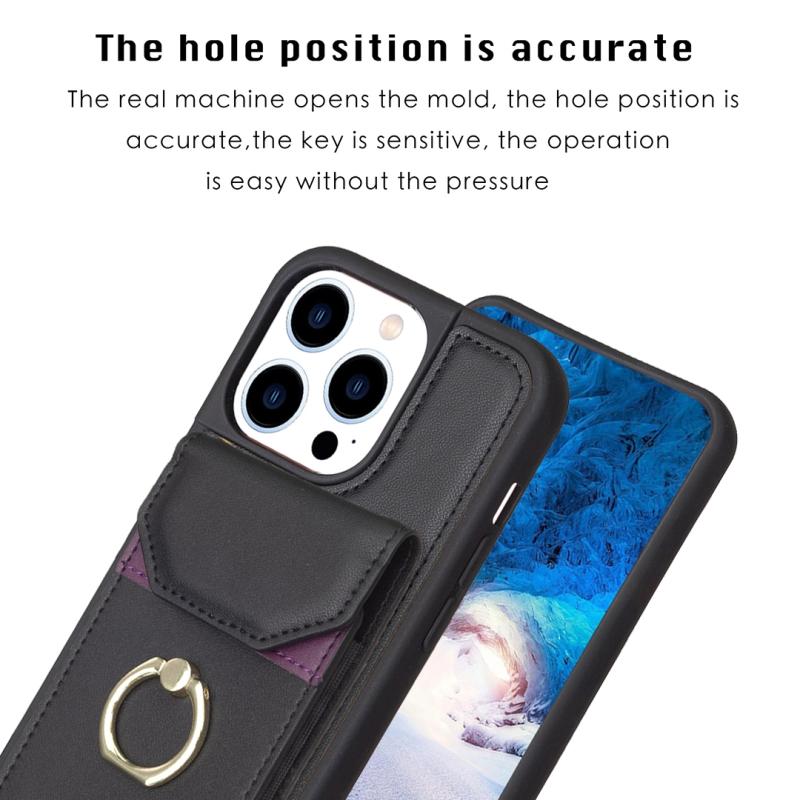 For iPhone 15 Pro BF29 Organ Card Bag Ring Holder Phone Case(Black)