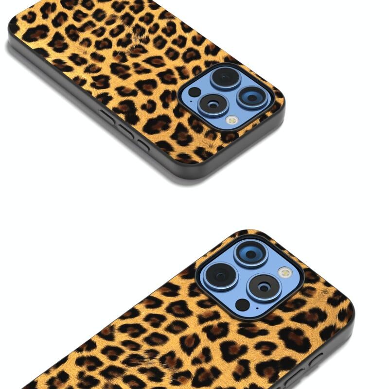 Θήκη τηλεφώνου για iPhone 15 Pro Μαύρο πλαίσιο Λεοπάρ (εκτύπωση λεοπάρ)