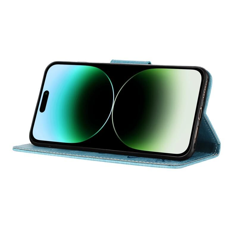 For iPhone 15 Pro Butterfly Embossed Flip Leather Phone Case(Blue)