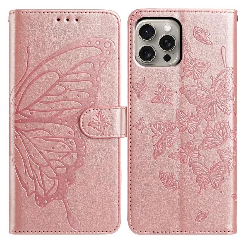 For iPhone 15 Pro Butterfly Flutter Pattern Embossed Leather Phone Case(Rose Gold)
