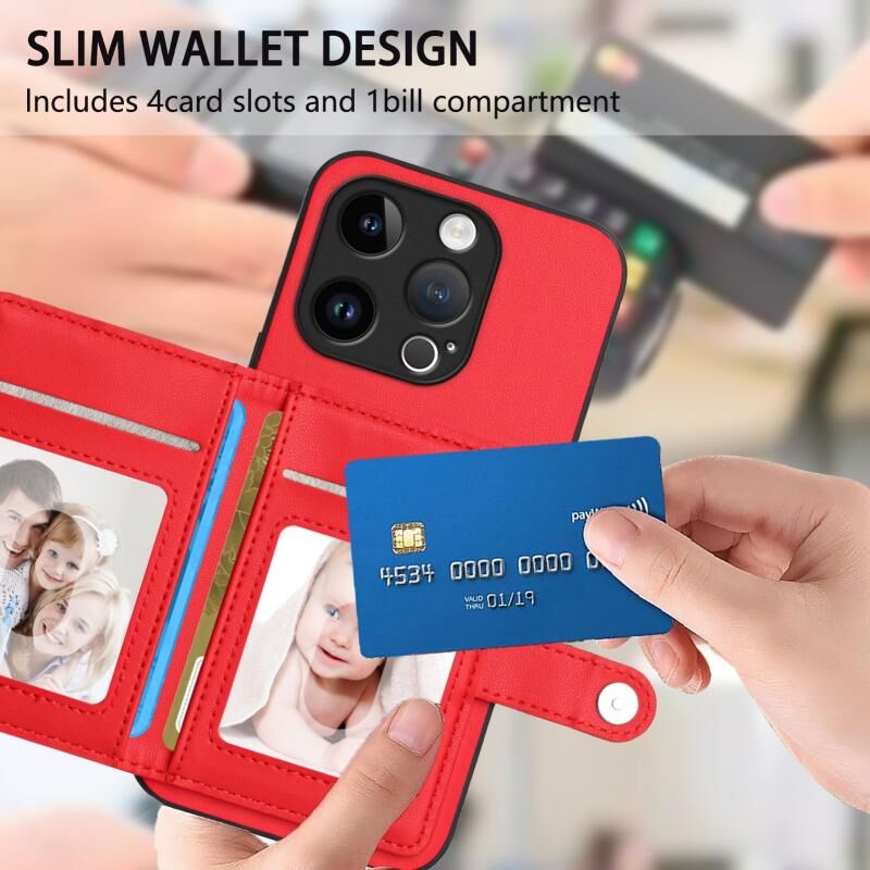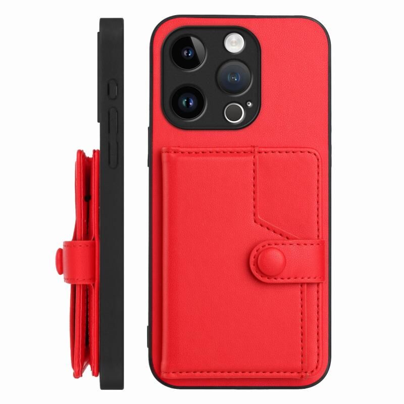 For iPhone 15 Pro Button Card Bag RFID Anti-theft Phone Case(Red)