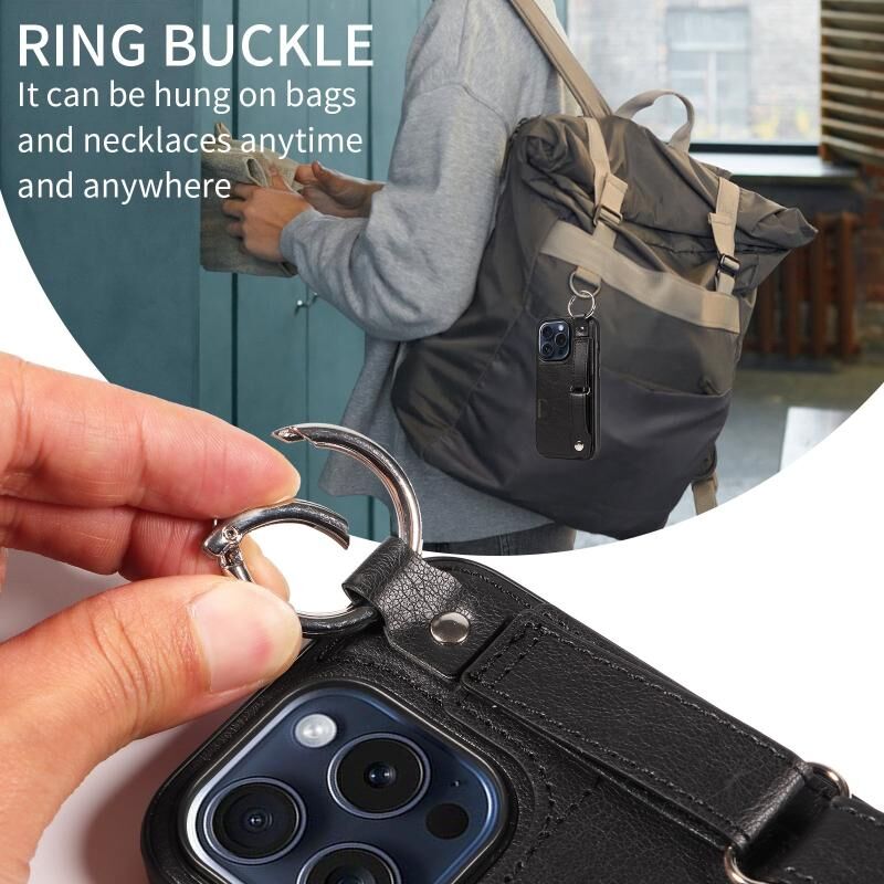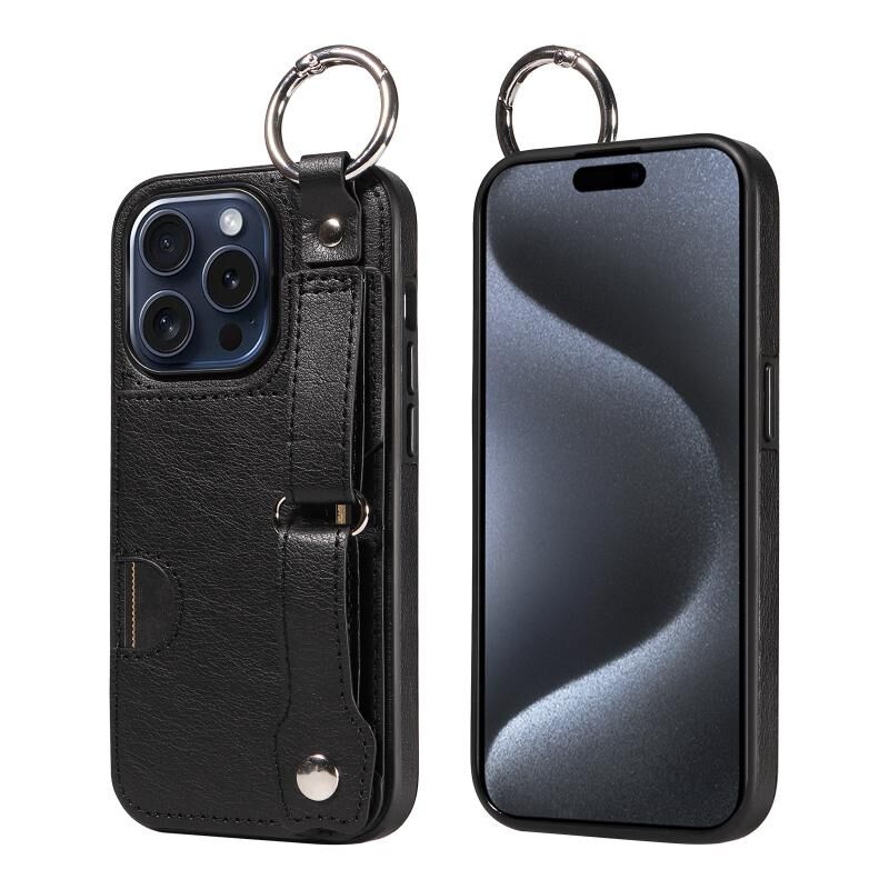 Θήκη τηλεφώνου για iPhone 15 Pro με υφή μοσχαρίσιου δέρματος, υποδοχή κάρτας καρπού και δακτύλιο (Ροζ)