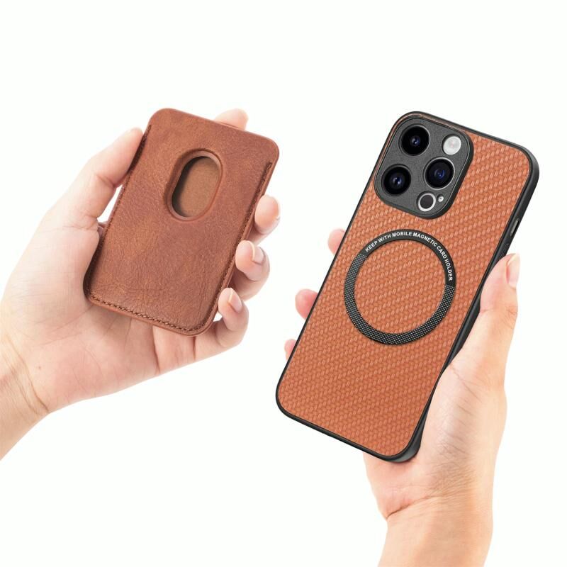 Θήκη τηλεφώνου MagSafe από ανθρακονήματα και δέρμα για iPhone 15 Pro (Καφέ)