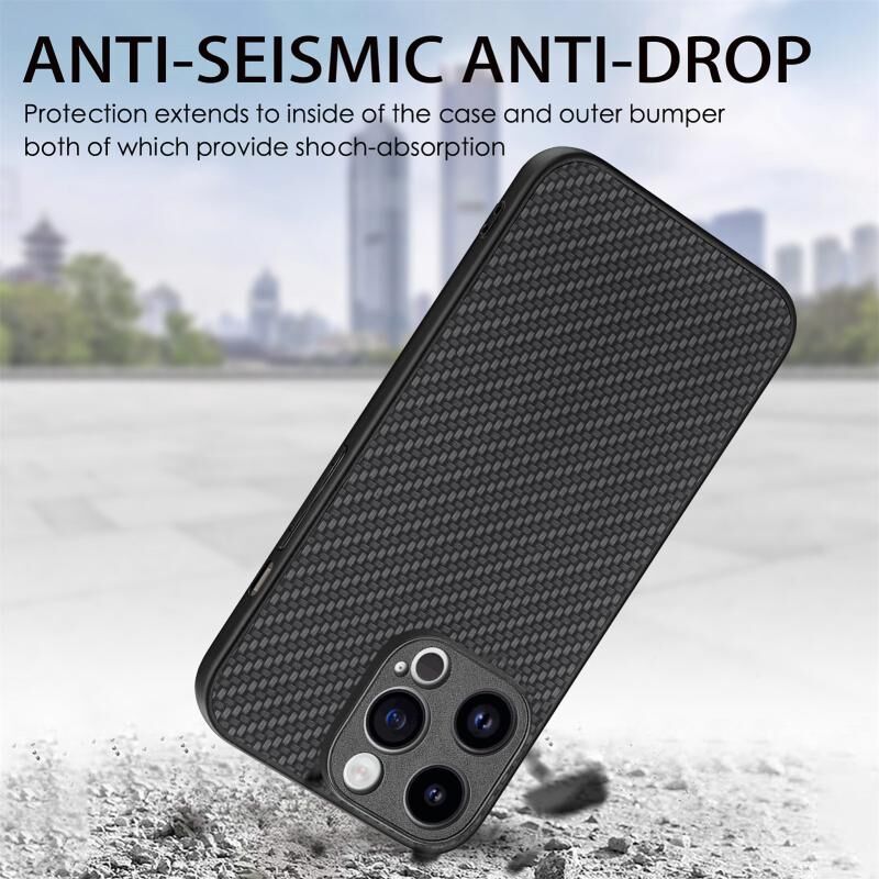 Θήκη τηλεφώνου για iPhone 15 Pro με υφή ανθρακονημάτων και δέρμα (Μαύρο)