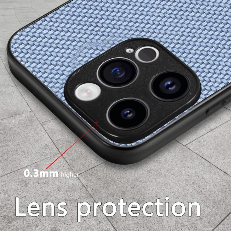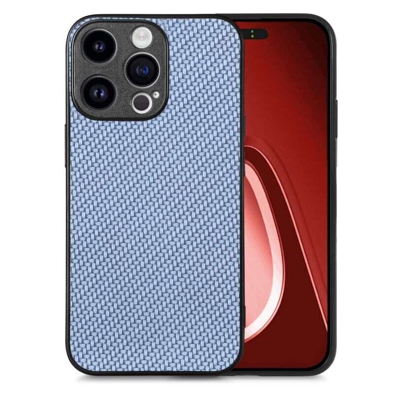 Θήκη τηλεφώνου για iPhone 15 Pro με υφή ανθρακονημάτων και δέρμα (Μπλε)