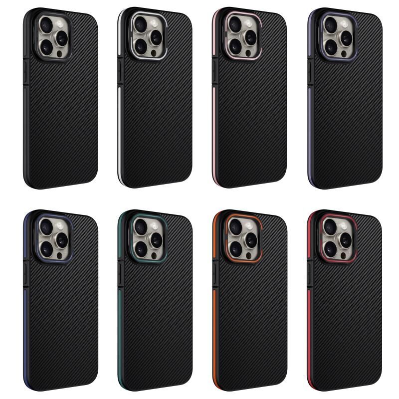 Θήκη τηλεφώνου TPU με υφή ανθρακονήματος για iPhone 15 Pro, προστατευτικό φακού (Μαύρο)