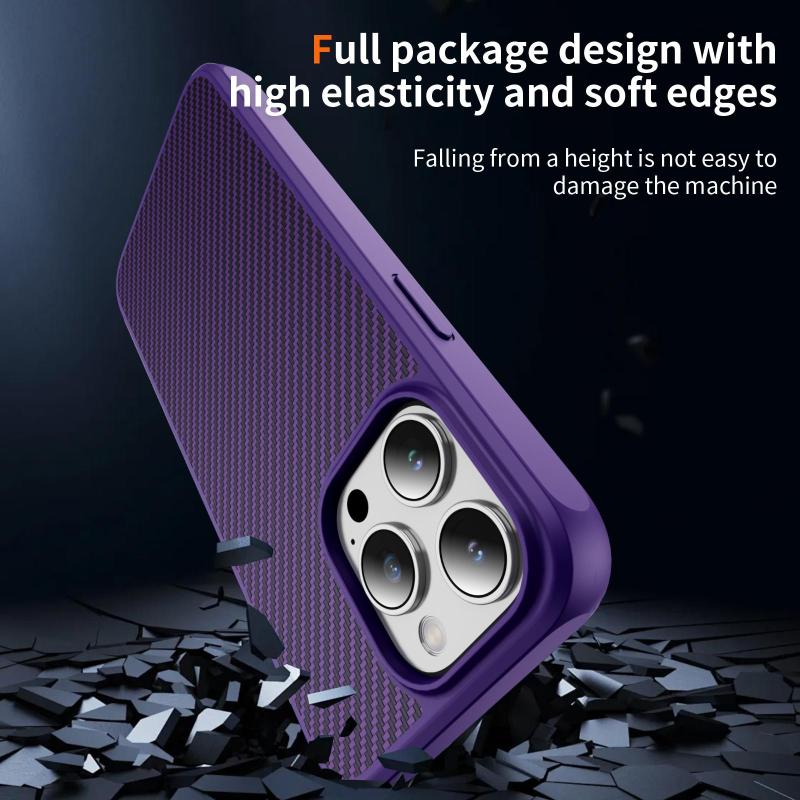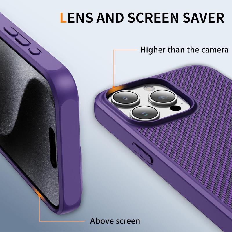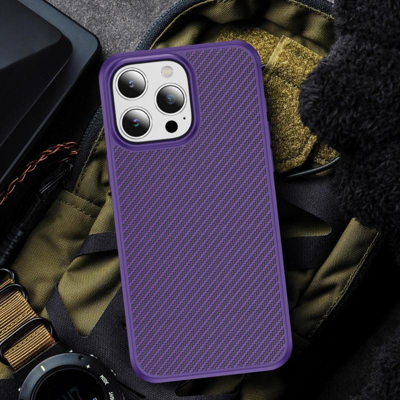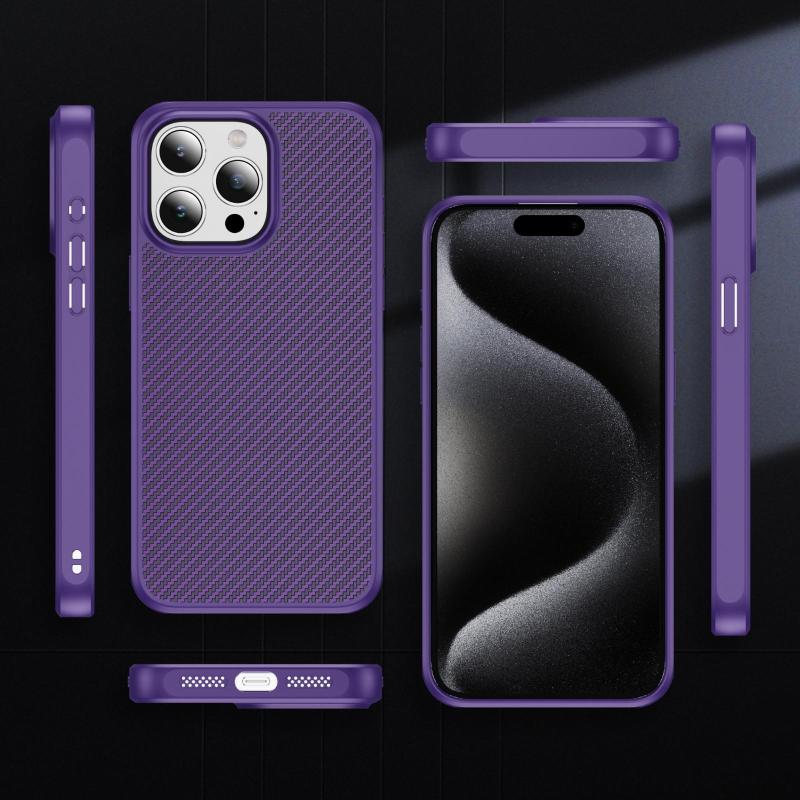 For iPhone 15 Pro Carbon Fiber Texture Skin-feel Acrylic TPU Phone Case(Purple)