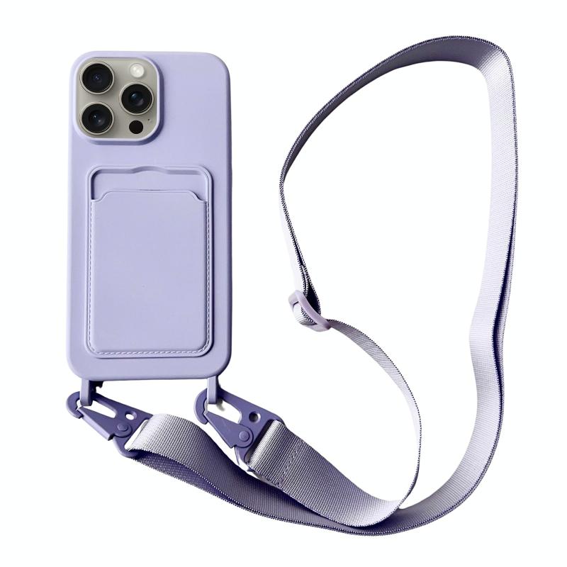 Θήκη για iPhone 15 Pro με υποδοχή κάρτας, υγρή σιλικόνη με κορδόνι (Μαύρο)