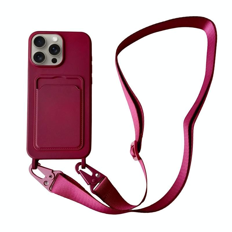 Θήκη για iPhone 15 Pro με υποδοχή κάρτας, υγρή σιλικόνη με κορδόνι (Μαύρο)