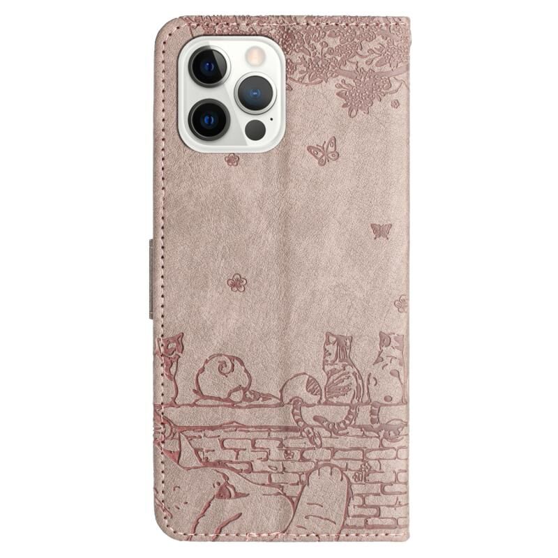 For iPhone 15 Pro Cat Embossing Pattern Leather Phone Case with Lanyard(Grey)