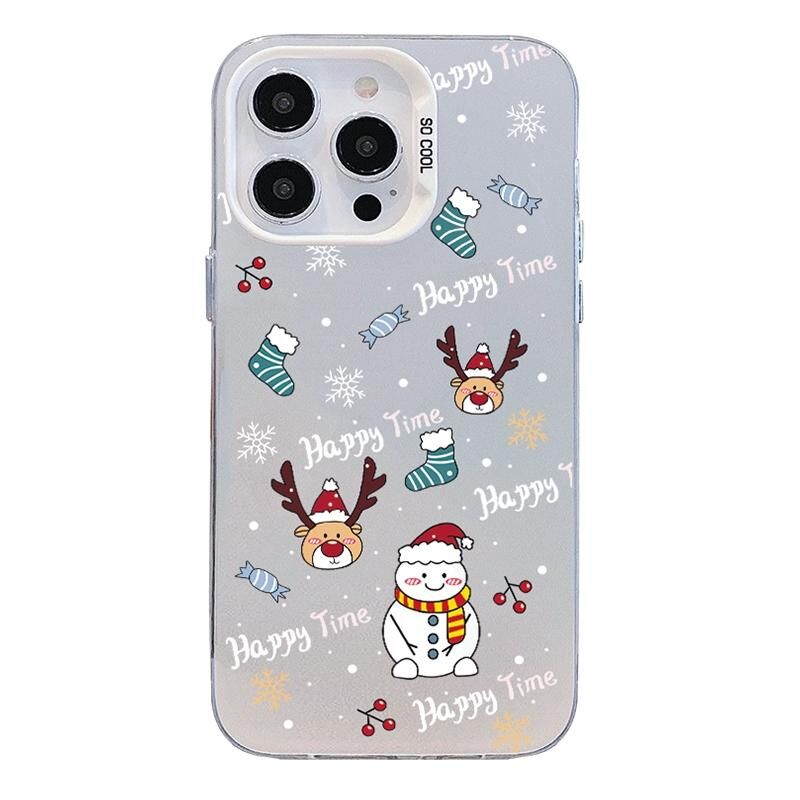 For iPhone 15 Pro Christmas Series PC Full Coverage Pattern Phone Case(CW041 White)