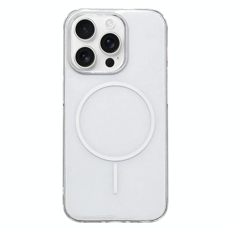 For iPhone 15 Pro Clear Color PC Thin Circle MagSafe Phone Case(White)