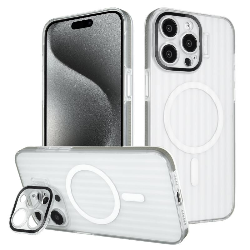 For iPhone 15 Pro Color Edge Lens Holder MagSafe Magnetic Phone Case(Grey)