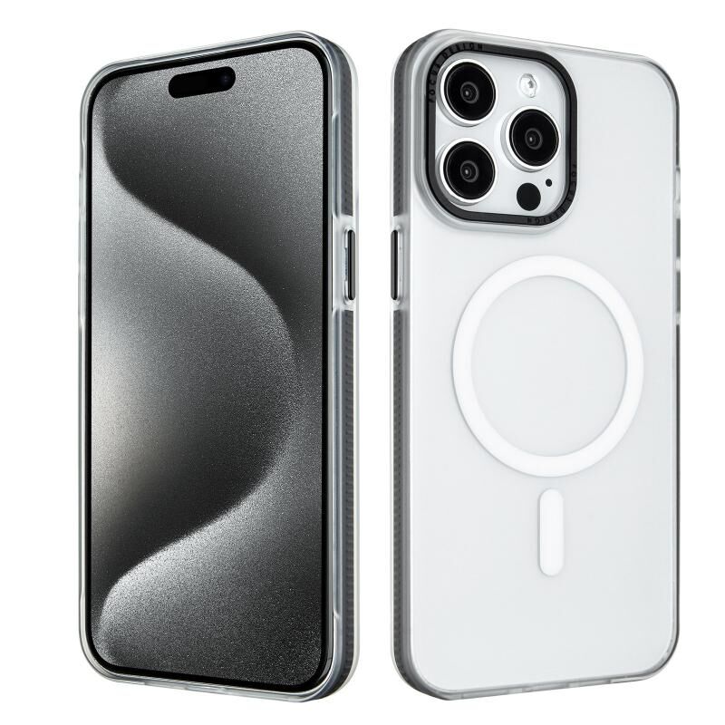 For iPhone 15 Pro Color Edge Skin Feel Frosted MagSafe Magnetic Phone Case(Black)