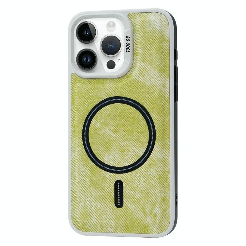 Θήκη τηλεφώνου MagSafe Μαγνητική από τζιν σε αντίθετα χρώματα για iPhone 15 Pro (Κίτρινο Πράσινο)