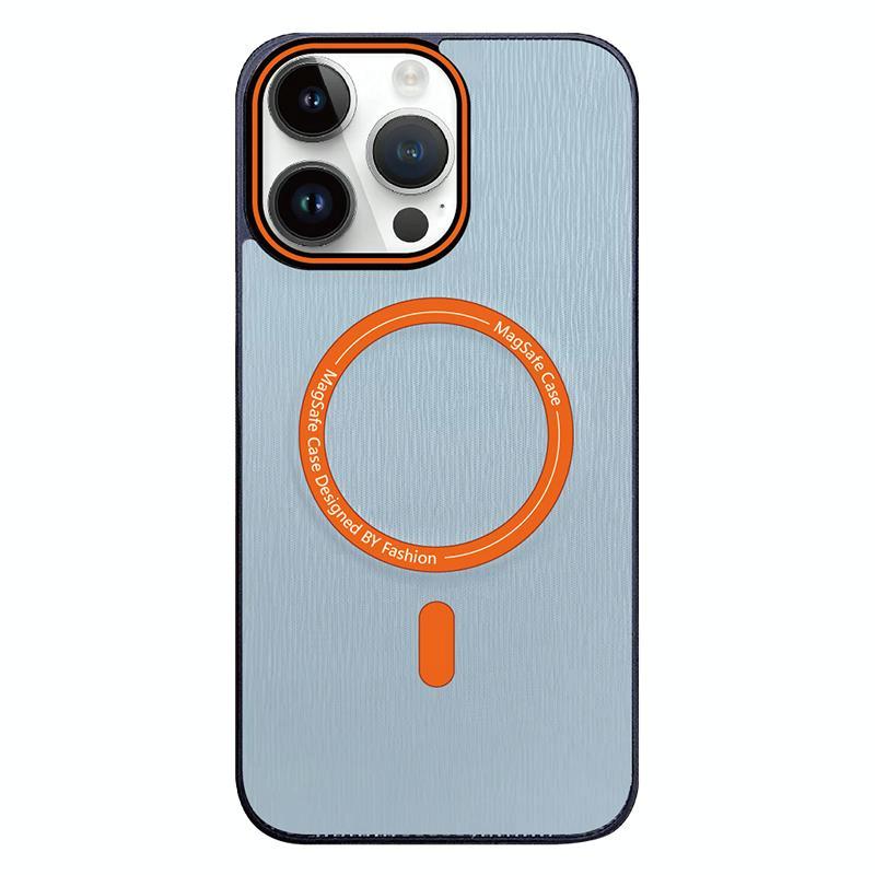 For iPhone 15 Pro Contrast Color Imitation Wood Texture MagSafe Phone Case(Sky Blue)