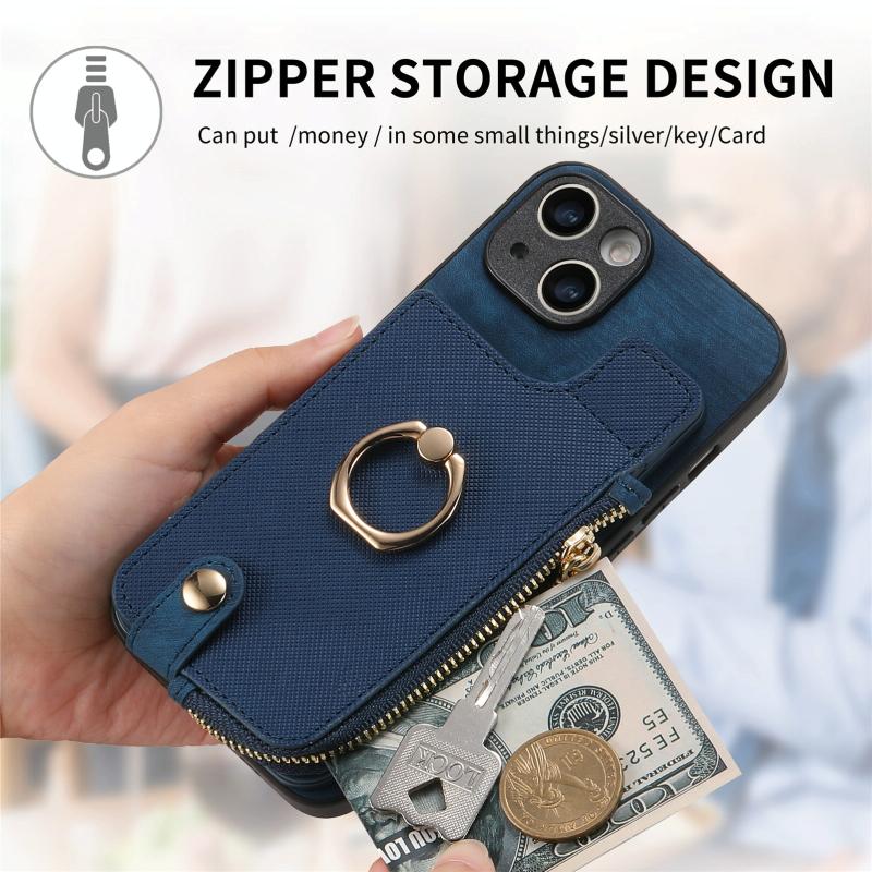 2. Zipper Wallet Function: The leather case is equipped with card slots for placing cards and a small amount of cash.