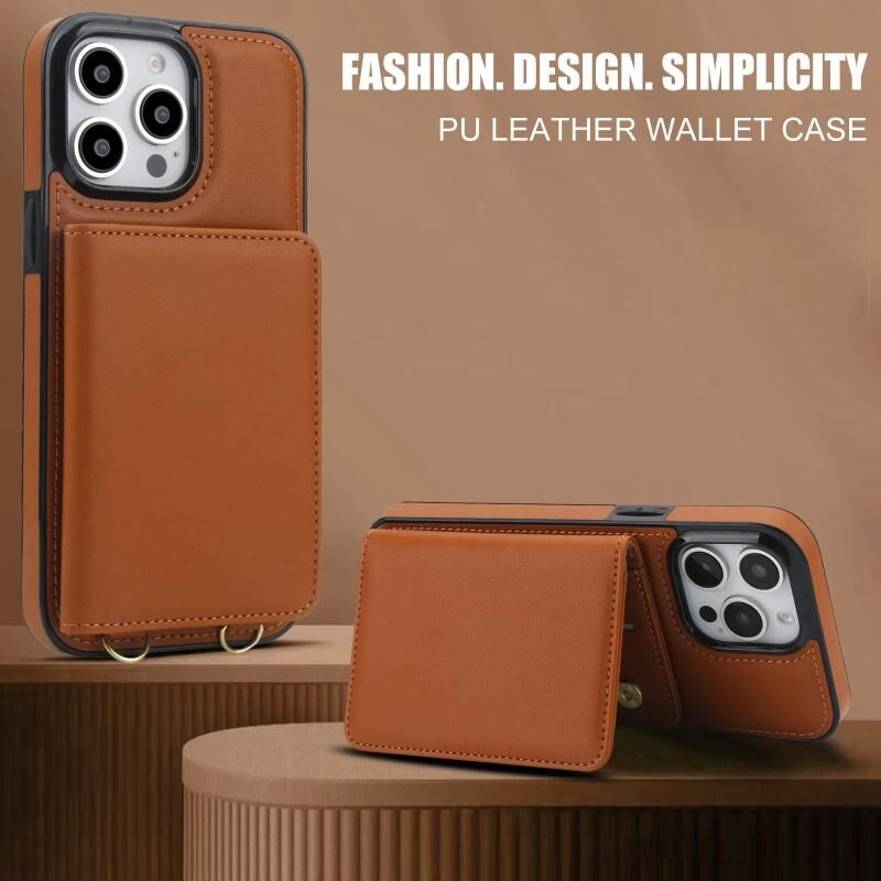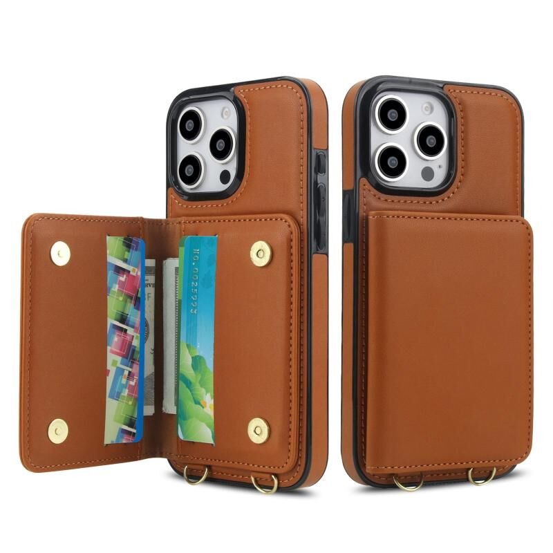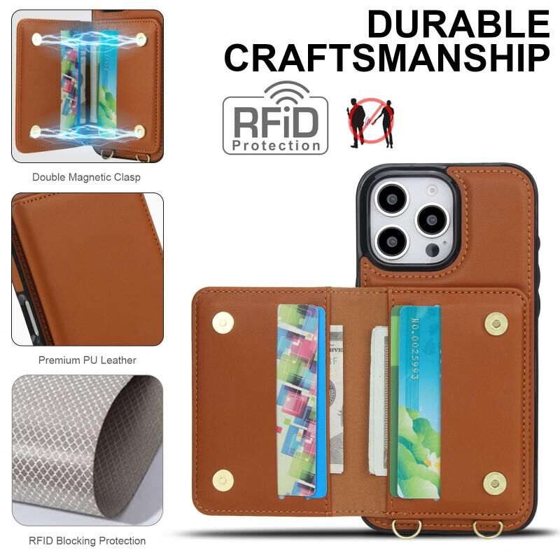 For iPhone 15 Pro Crossbody Dual-buckle Wallet RFID Back Leather Phone Case(Brown)