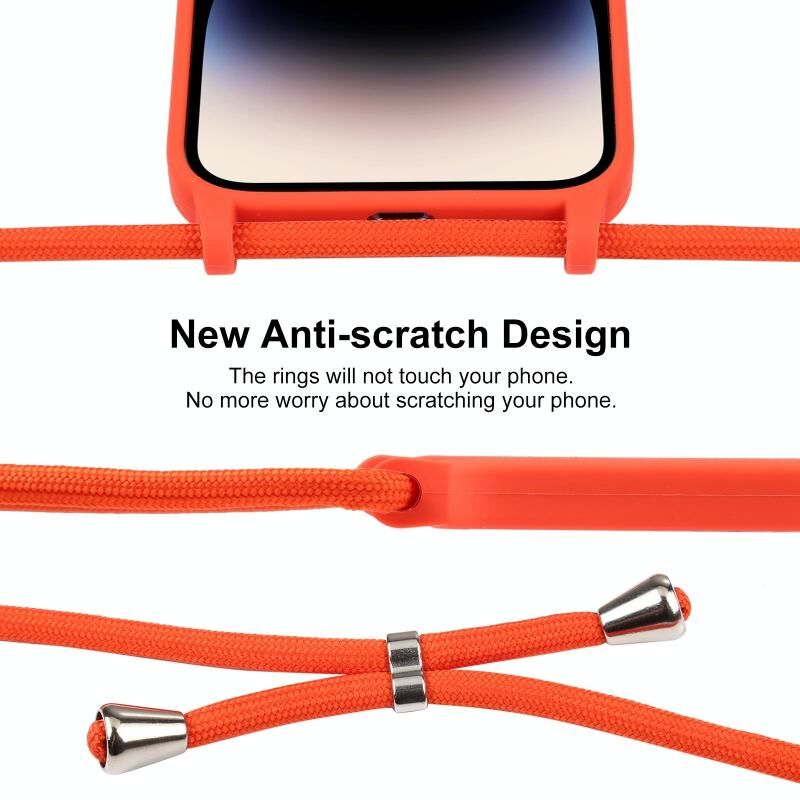 Θήκη για iPhone 15 Pro από υγρή σιλικόνη με λουρί Crossbody (Πορτοκαλί)